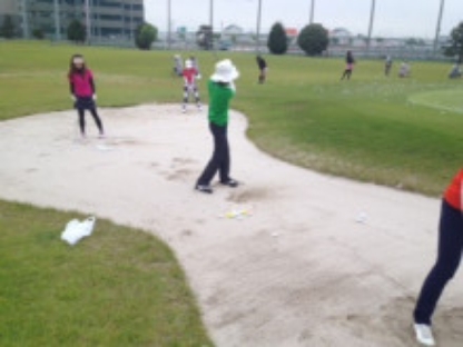 コースでの実践レッスンです。練習場では味わうことのできない緊張感のなかでプレー、ルールやマナーも覚えることができます。